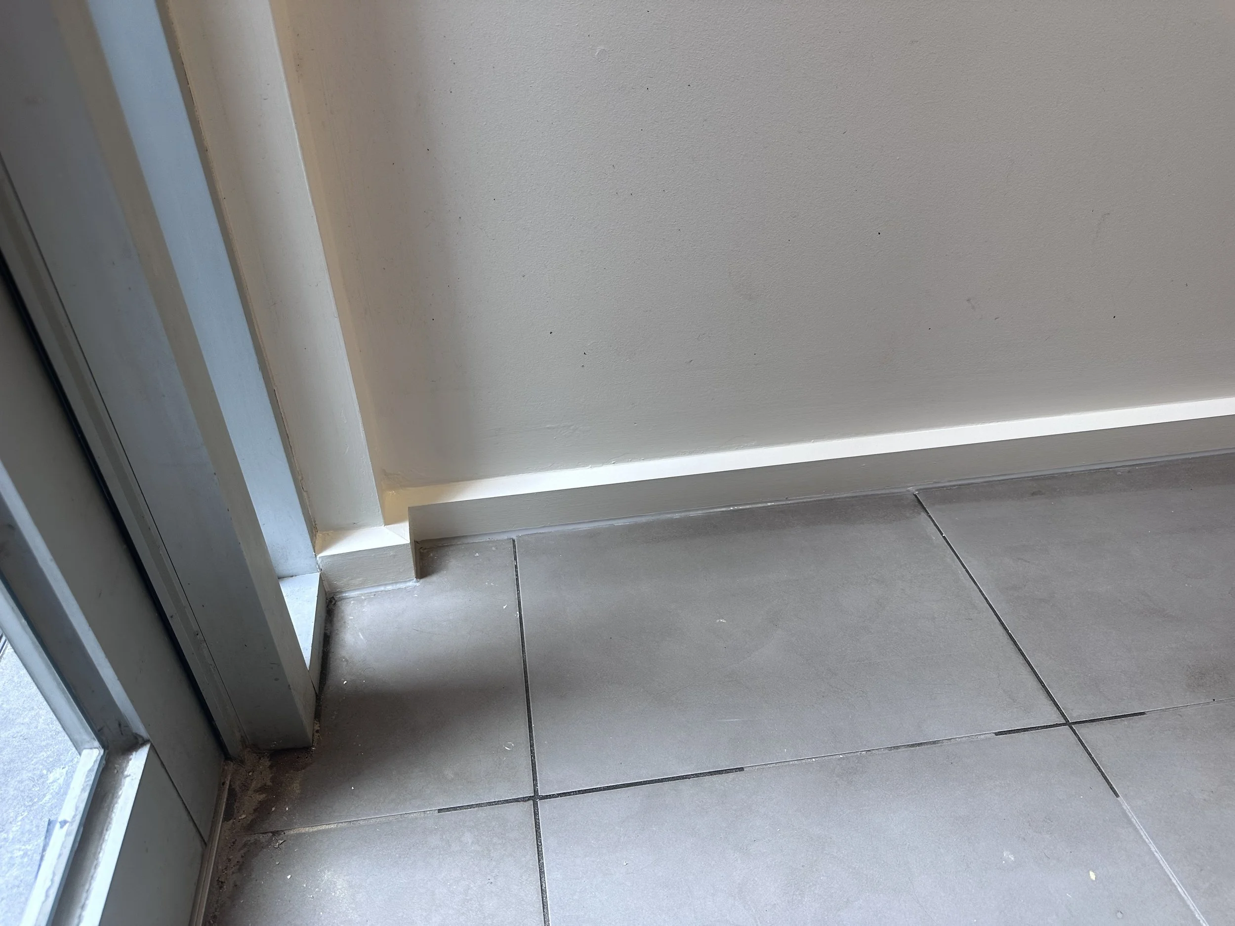 Colour matched paint with existing and grey caulk to glend in the tiles