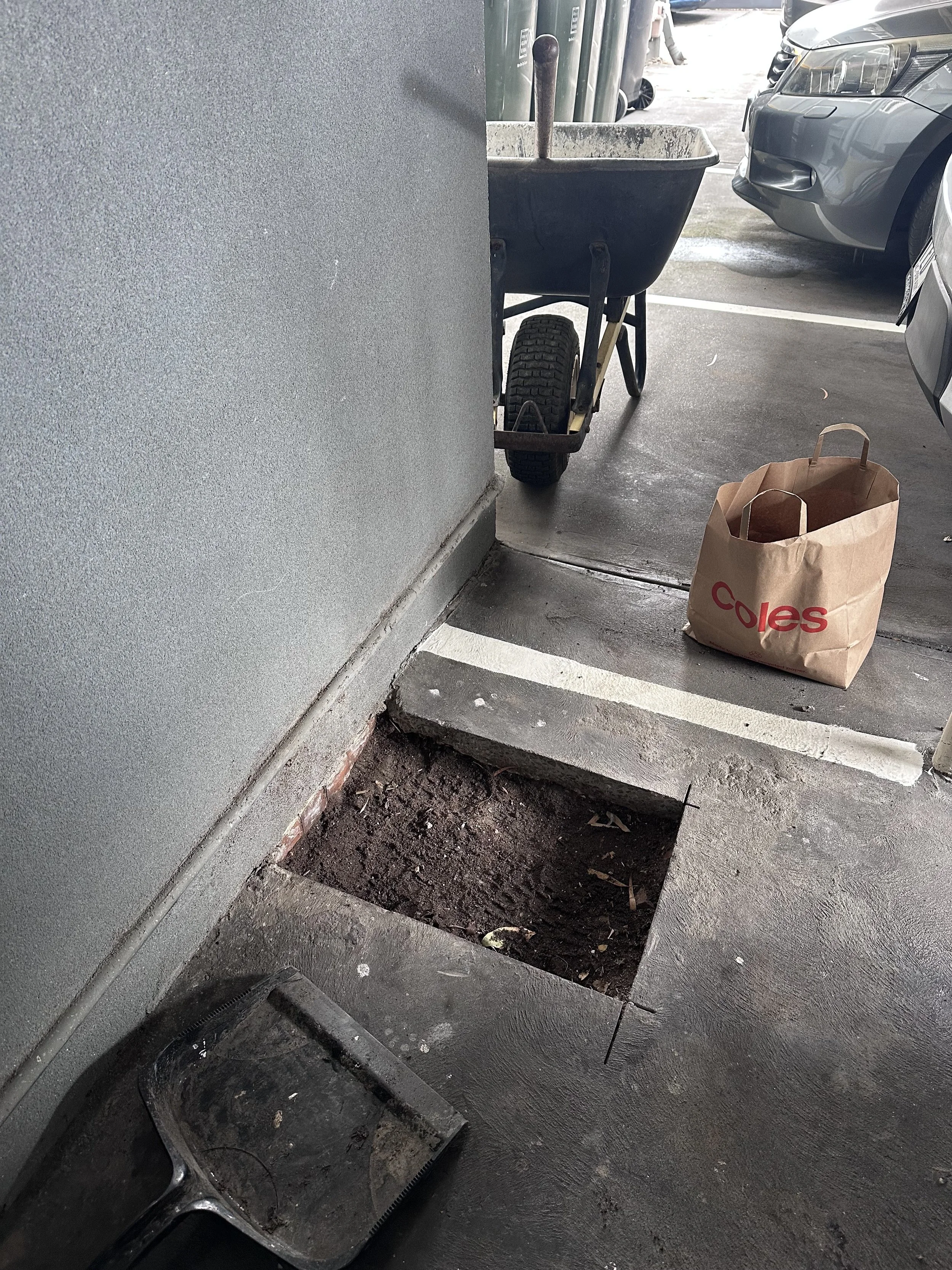 Concrete patching after the plumber left